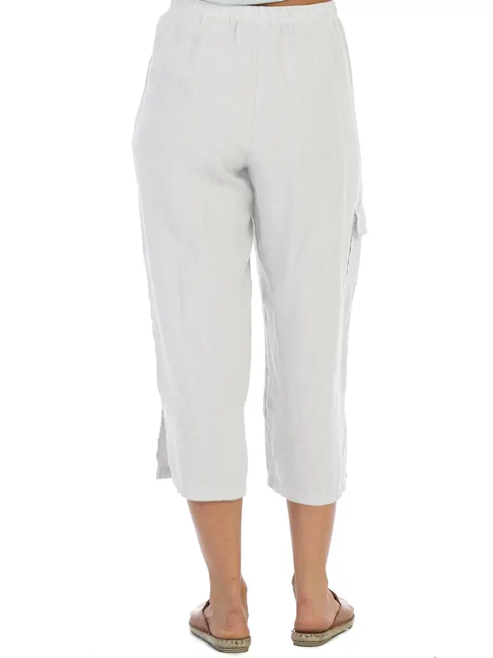 Style them with a colorful blouse, a fitted tank, or a loose tunic. Whether you’re dressing for a casual outing or vacationing in a warm climate, the Linen Cropped Pants White are easy to wear and style again and again.